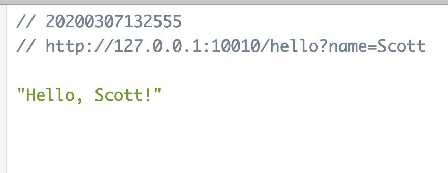 동일하게 curl http://127.0.0.1:10010/hello?name=Scott을 실행하면 Cannot read property 에러가 발생