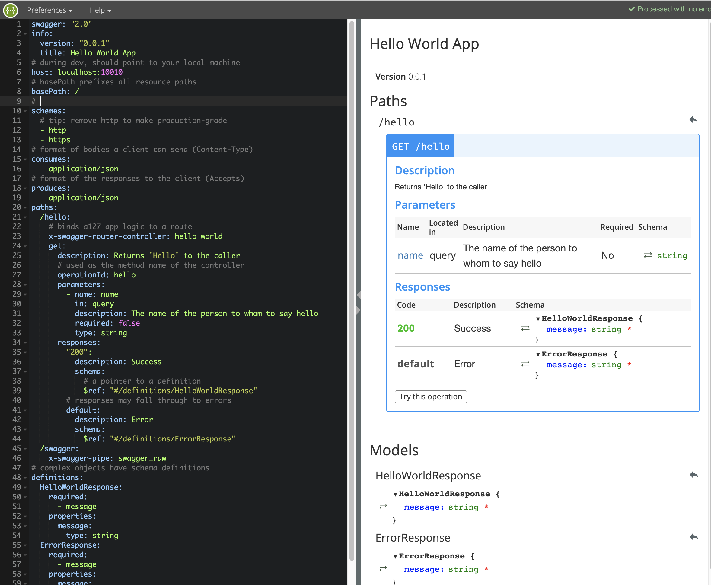 (실패) 첫번째 방법 npm install --save swagger-router을 하라고 하는구나. 이렇게 하니까 정상적으로 실행이 되는데 음...~ 이 방법으로 하면http://127.0.0.1:10010/hello?name=Scott`으로 했을때 에러가 난다. 정상적으로 수정하는 방법이 아님. 아래 방법이 좋을듯
